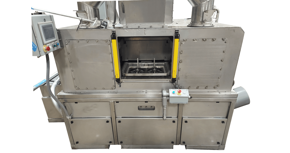 This application required parts to be loaded into a fixture and indexed through the washer.