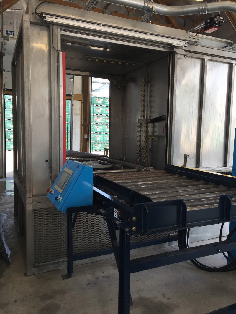 Inline specializes in washers for which clean Buckhorn CenterFlow and Orbis/SeedBox GEN250 totes used to transport and apply seed. These totes are often extremely dirty when returned from farms and must be thoroughly cleaned before being refilled with new seed. Our seed box washers rotate the box 360 degrees, and can also dry the box. Options include washing the inside of the box, blowing off the top and sides, and automatically nesting / denesting the box for storage.
