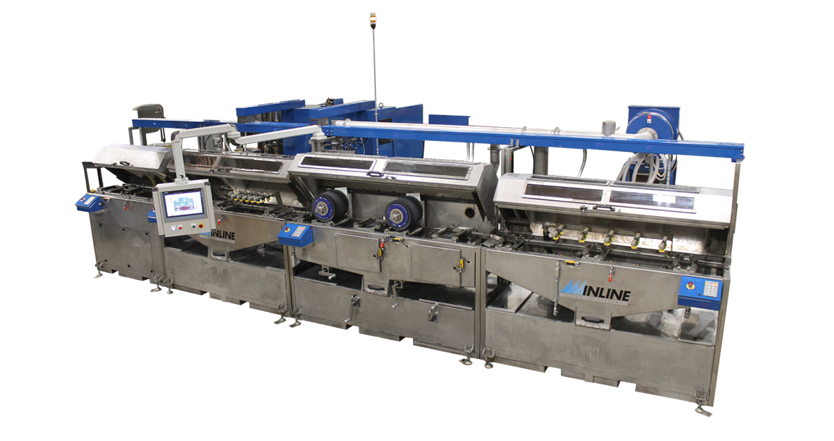 Inline manufactures complete wet brush lines including wash, powered brush (top and/or bottom), rinse, and dry for continuous strip or sheet products.
